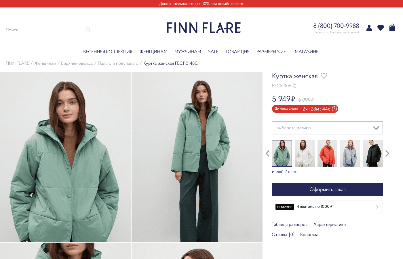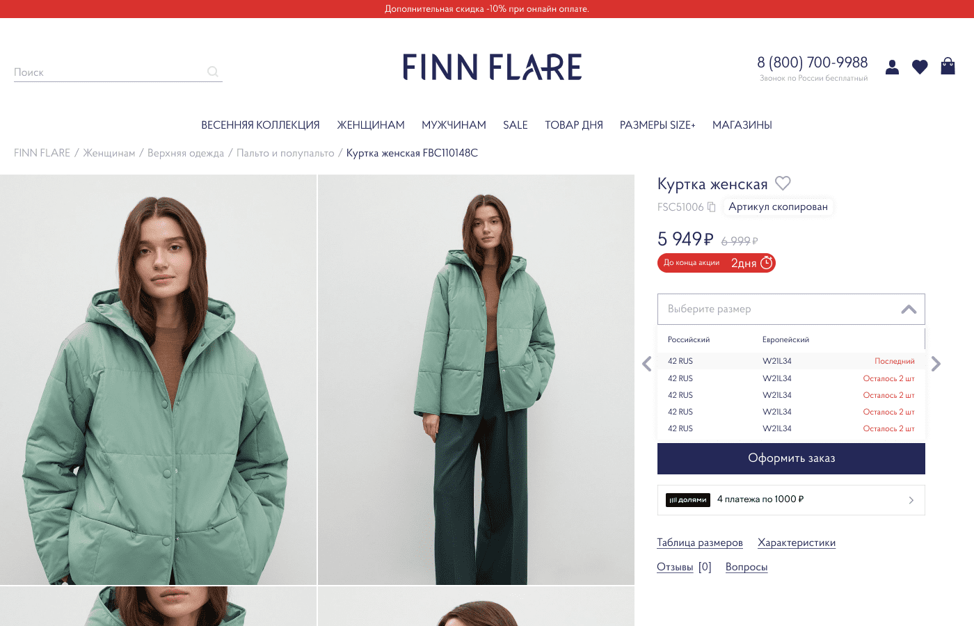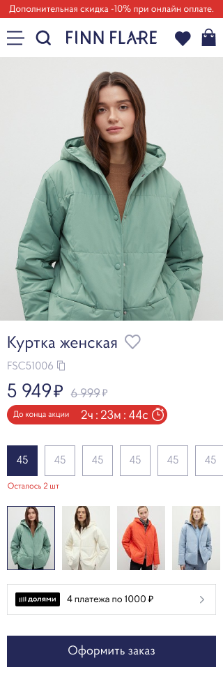 The article has a subtitle with the possibility of copying. Added a timer for the end of the promotion. Increased the number of photos in the color selection slider. Removed the extra button. Added the number of remaining items when choosing a size