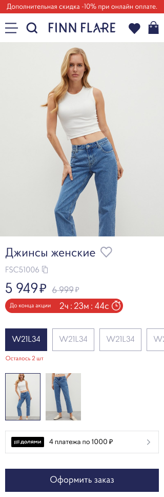 In the mobile version, the control has been changed to swipe and the button is fixed. All changes were checked by A/B tests. As a result, the conversion rate at the stage of adding an item to the cart increased from 10 to 15%