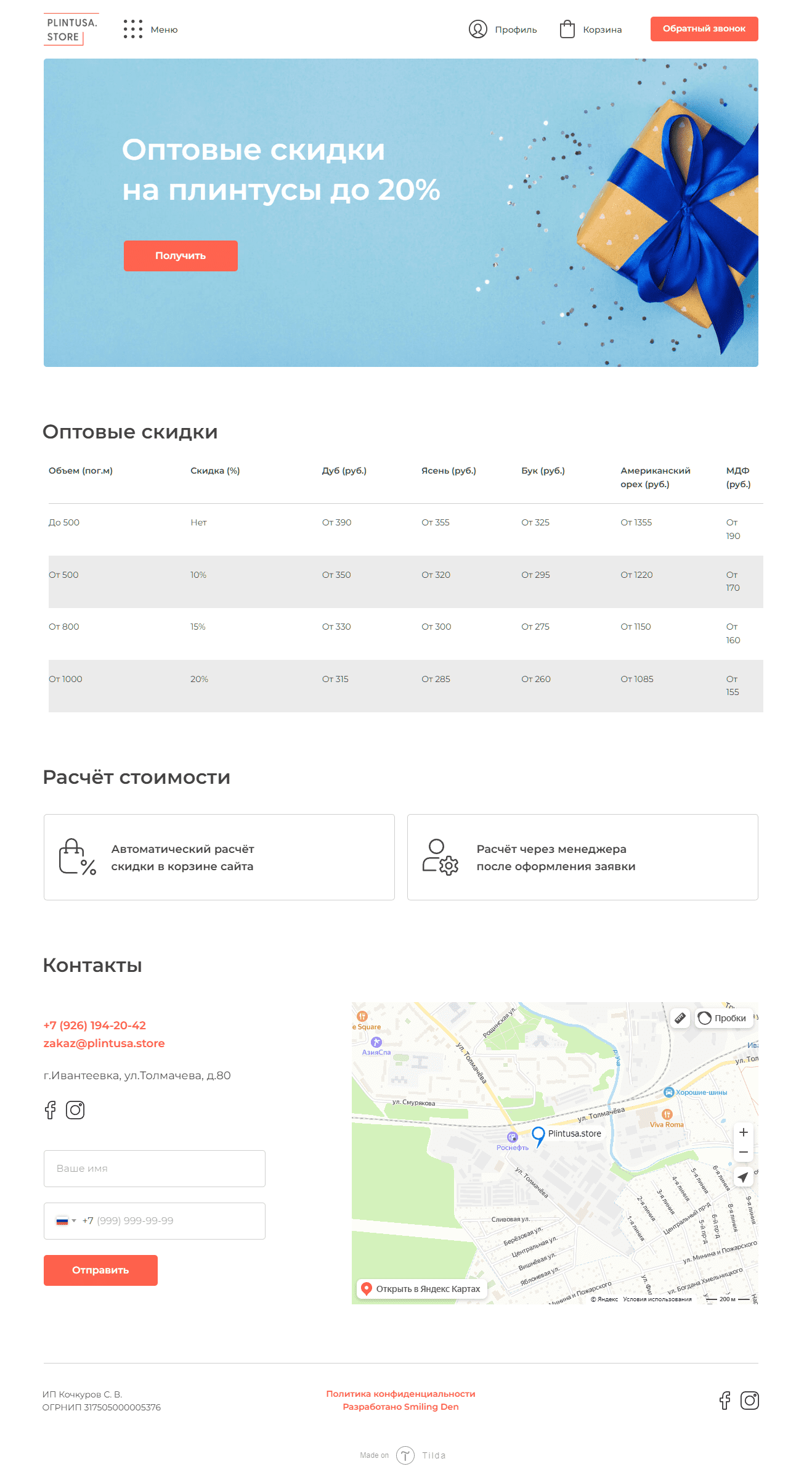 Фотографии заменились 3D моделями. Упростился оптовый калькулятор в карточке товара на более понятный розничному покупателю. Добавились страницы услуг и сопутствующие товары для привлечения клиентов на основной продукт